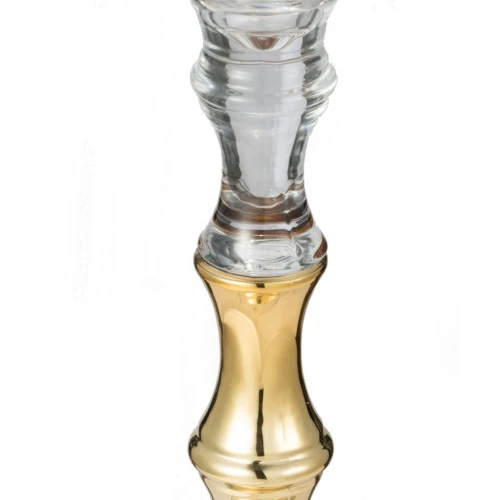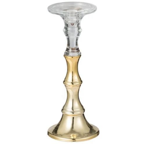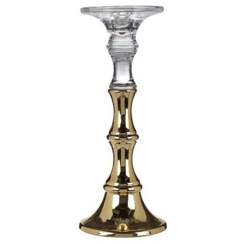 - Classic Finial Shaped Gold And Clear Candle Holder