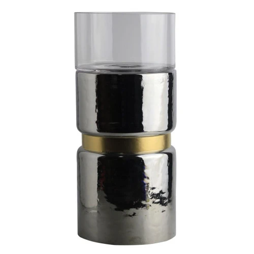 Featuring a glossy, hammered silver finish accented by a matte gold band
