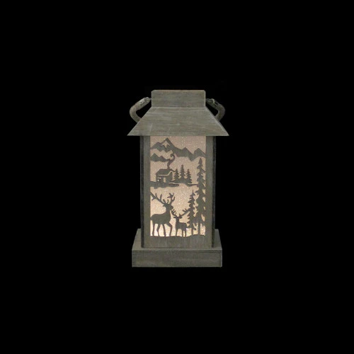 - Pre-Lit Wooden Deer And Cabin Silhouette Christmas Lantern Decoration