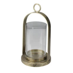 8.5” Antique-Styled Golden Weathered Christmas Pillar Candle Lantern