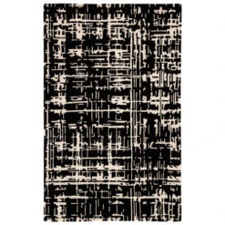 Christmas Central 9′ X 12′ Black And Cream White Trellis Handmade Rectangular Area Throw Rug