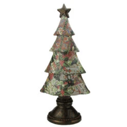 20″ Black And Red Victorian Holly Berry Decoupage Christmas Tree Tabletop Decor