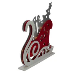 Christmas Central 12″ Pre-Lit Frosted Bristle Pine Sleigh Artificial Bush, Warm LED Lights