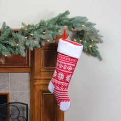 Northlight 21.5″ Red And White Knitted Snowflake Christmas Stocking With Fleece Cuff