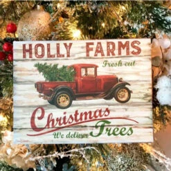 Christmas Central Cream White And Red Holly Farms Rectangular Sign With Rope Hanger 7″ X 10″
