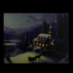 Northlight LED Lighted Candle Lantern In The Wintry Outdoors Christmas Canvas Wall Art 12″ X 15.75″
