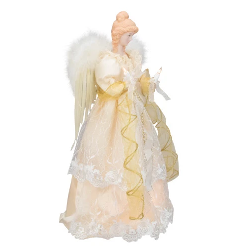 - Ivory And Gold Angel Pre Lit Christmas Tree Topper