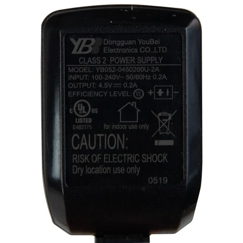 120 volts, 60 hertz, .08 amps, 9.6 watts
