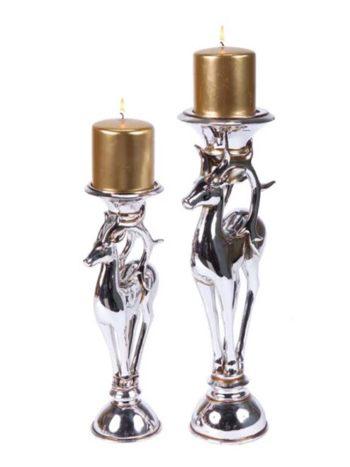 Set of 2 silver reindeer Christmas candle holders