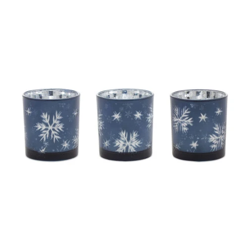 - Set Of 3 Blue And Silver Christmas Candle Holders