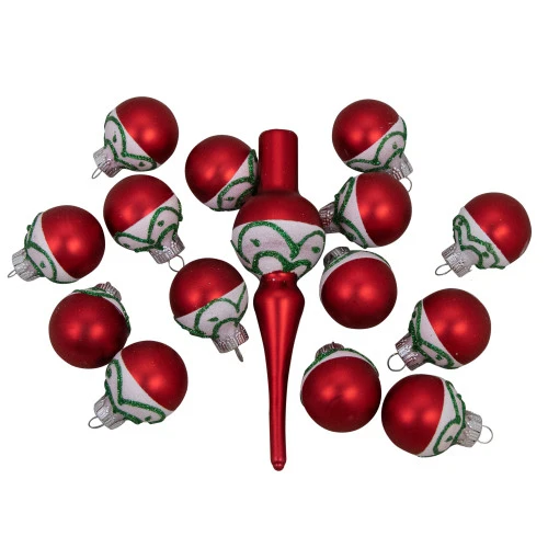 - 15 Count Red And White Frosted Tree Topper With Ball Ornaments