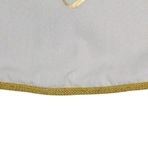 Tree skirt is circular in shape with a hole in the center for easy placement