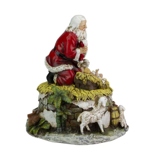 - Kneeling Santa And Baby Jesus Musical Figurine