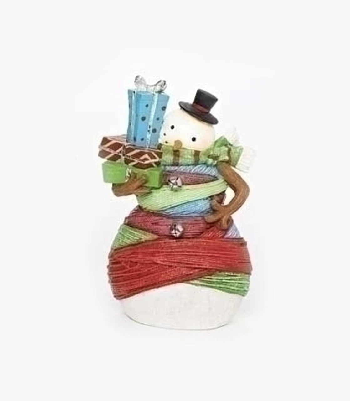 Roman 7″ Vibrantly Colored Striped And Yarn Wrapped Snowman With Gifts Christmas Figure