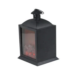 10″ LED Lighted Black Chimney Lantern With Faux Fire Christmas Decoration