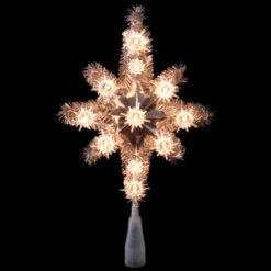 Northlight 11″ Silver Lighted Tinsel Star Of Bethlehem Christmas Tree Topper – Clear Lights
